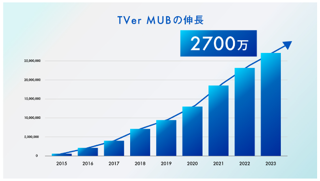 2023年1月時点での月間ユーザー数は2,700万MUB(TVerサービス全体の月間ユニークブラウザ数)
