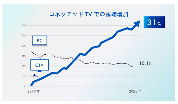 また、2023年1月にはコネクテッドTV(インターネット回線に接続されたテレビ端末)での視聴が3割を超えたというデータが発表されています。